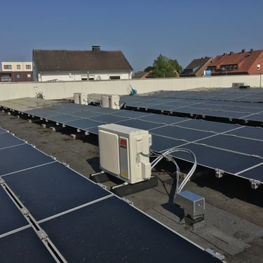 Installatie 12 KW monoblok R32 wamtepomp i.c.m. zonnepanelen